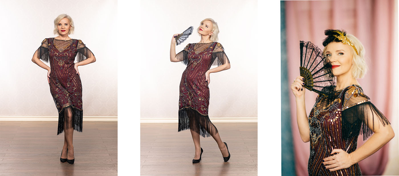 Astudes meie stuudiosse, saad hetkega rännata ajas tagasi – otse 1920ndate The Great Gatsby glamuuri. Sädelevad flapper-stiilis kleidid, luksuslikud kangad ja lummavad detailid loovad meeldejääva välimuse, mis paneb sind särama nagu tõeline ajastuikoon.
